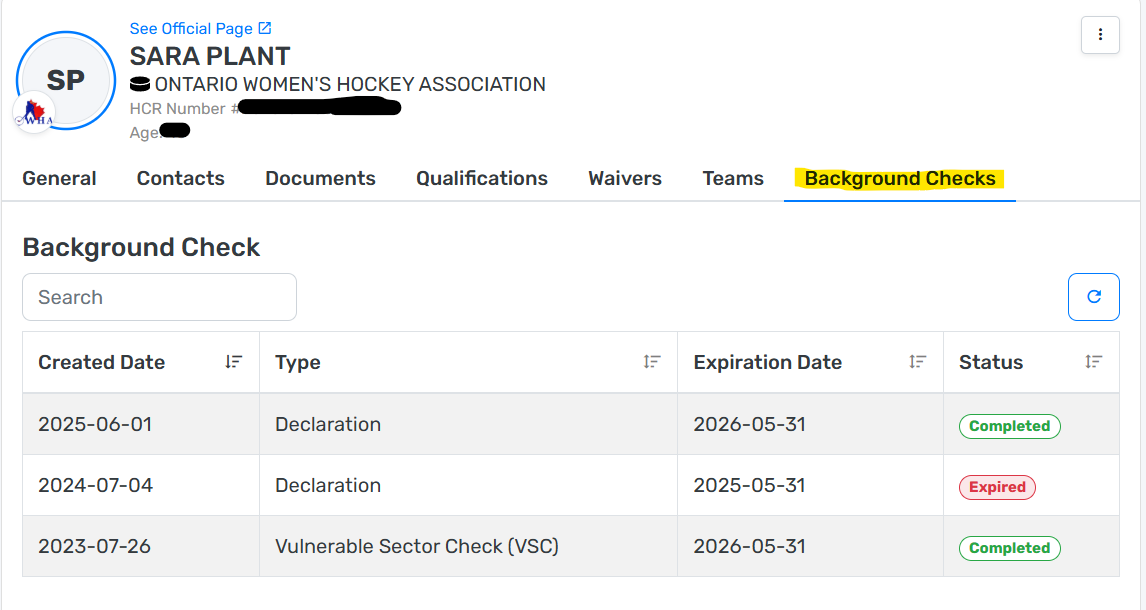 Your Vulnerable Sector Check (VSC) status must either be a yellow "Pending" or a green "Completed"